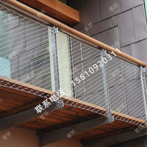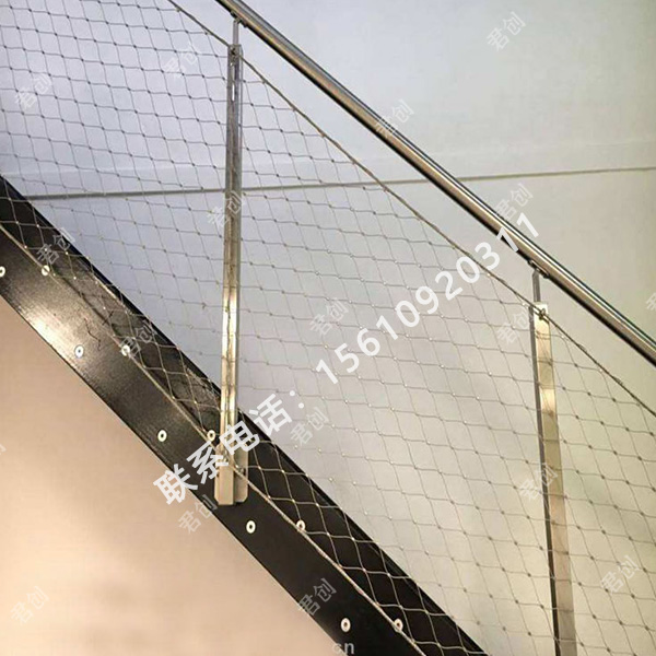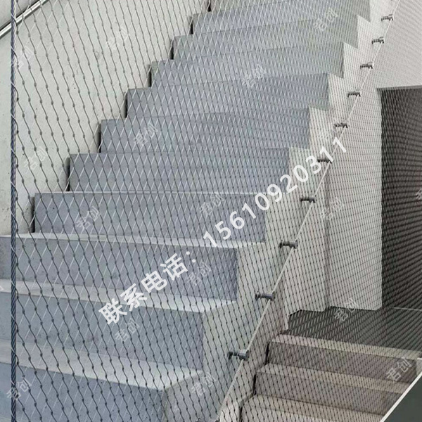 樓梯防護(hù)繩網(wǎng):不銹鋼繩網(wǎng)(扶桿圍欄網(wǎng))(扶桿防護(hù)網(wǎng))(扶桿軟網(wǎng))(扶桿柔性網(wǎng))是由不銹鋼絲繩上下絞織與鋼套擠壓而成,鋼絲繩直徑有1.0、1.5、2.0、3.0mm,鋼絲繩結(jié)構(gòu)有7*7、7*19、1*19等,材質(zhì)有304、304L、316、316L,其次我們還可以提供熱鍍鋅鋼絲繩網(wǎng)產(chǎn)品。鋼套材質(zhì)主要采用不銹鋼套,其它還有鋁套、銅套、銅鍍錫套以供客戶選擇。
